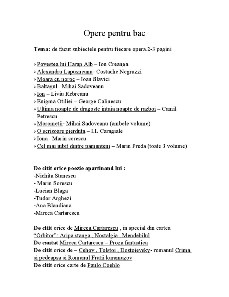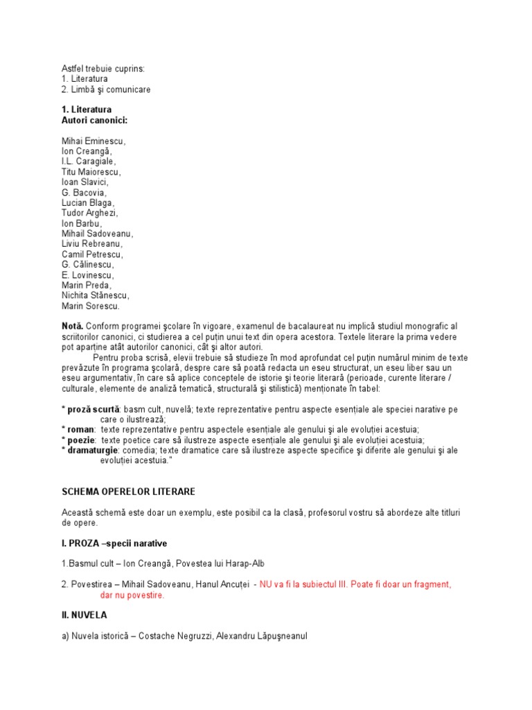 Ce autori intra in programa de la bac toti. şi Literatura Română este structurat în 3 subiecte. După cum ştim examenul de la Lb.